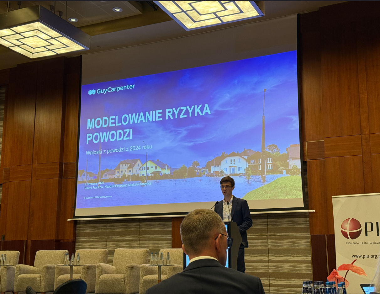 Seminarium rozpoczęło się od prezentacji dotyczących modelowania ryzyka powodziowego oraz wpływu zmian klimatycznych na częstość i intensywność zjawisk katastroficznych. Theodor Fiala PhD (Aon), Paweł Franków (Guy Carpenter) oraz Martina Botter PhD (Swiss Re Institute) wskazali na rosnącą potrzebę aktualizacji modeli ryzyk katastroficznych i uwzględniania długoterminowych zmian klimatycznych.