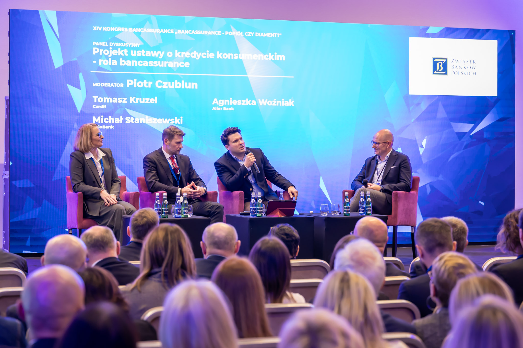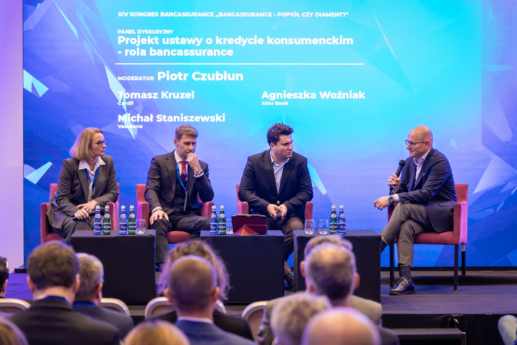 Panel dyskusyjny „Regulacje kontra praktyka: co zmienia projekt ustawy o kredycie konsumenckim dla bancassurance?” moderowany przez Piotra Czubluna zgromadził ekspertów z banków, ubezpieczycieli oraz instytucji nadzorczych, w tym Artura Zwalińskiego (UOKiK), Agnieszkę Woźniak (Alior Bank), Tomasza Kruzela (Cardif) i Michała Staniszewskiego (VeloBank).
