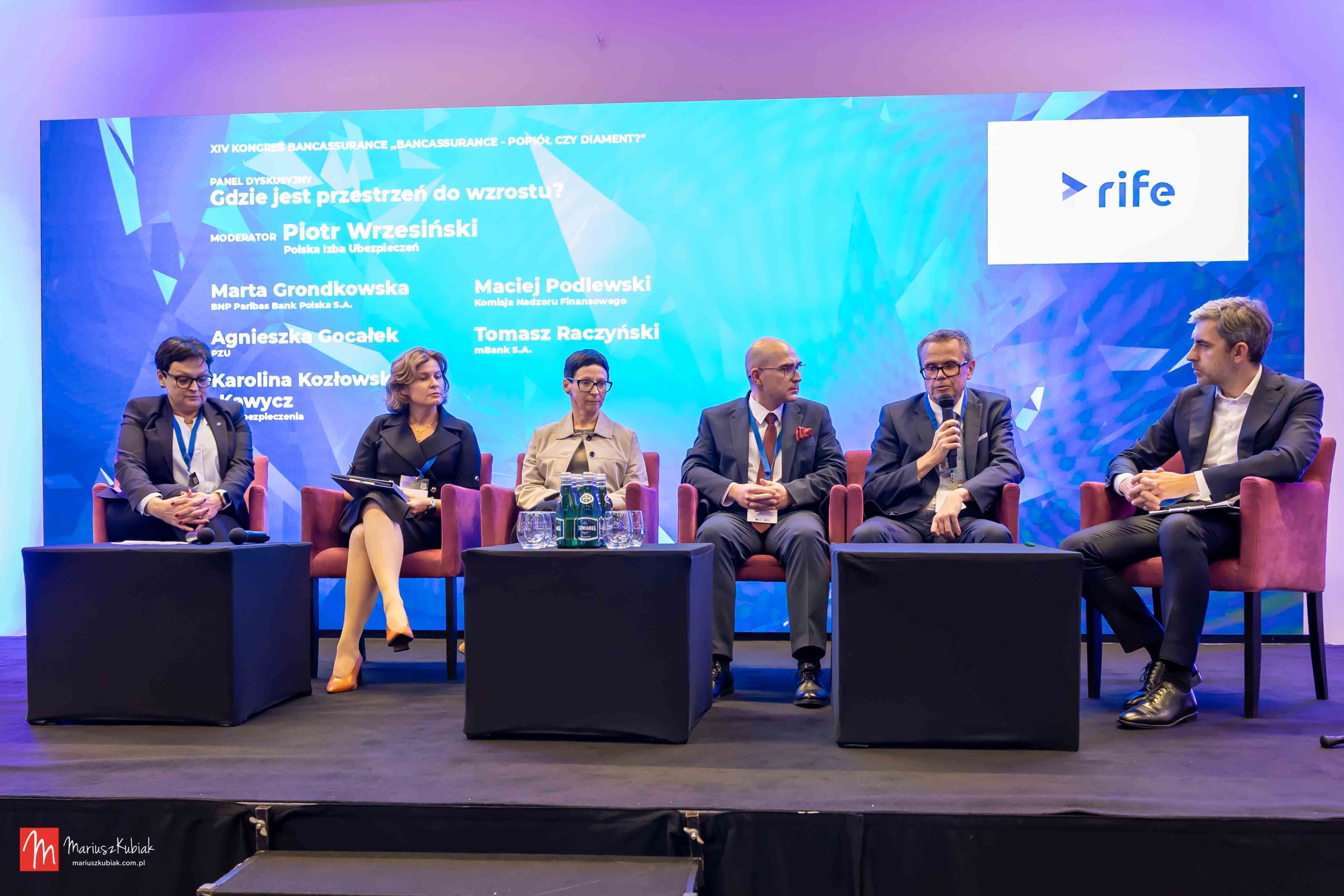 Ostatni panel, moderowany przez Piotra Wrzesińskiego, z udziałem Macieja Podlewskiego (KNF), Agnieszki Gocałek (PZU/PIU), Marty Grondkowskiej (BNP Paribas Bank Polska), Karoliny Kozłowskiej – Kawycz (PKO Ubezpieczenia) i Tomasza Raczyńskiego (mBank) poświęcony był przestrzeni do wzrostu w sektorze bancassurance. Paneliści wskazywali na kluczowe obszary rozwoju bancassurance: wykorzystanie technologii, dopasowanie produktów do potrzeb klientów, budowanie zaufania, elastyczne modele współpracy między bankami a ubezpieczycielami, a przede wszystkim stabilność regulacyjną. Zgodzili się, że bancassurance ma realny potencjał, by stać się diamentem w przyszłości, jeśli otworzy się na innowacje a jego rozwój nie będzie blokowany nadmiarem regulacji.